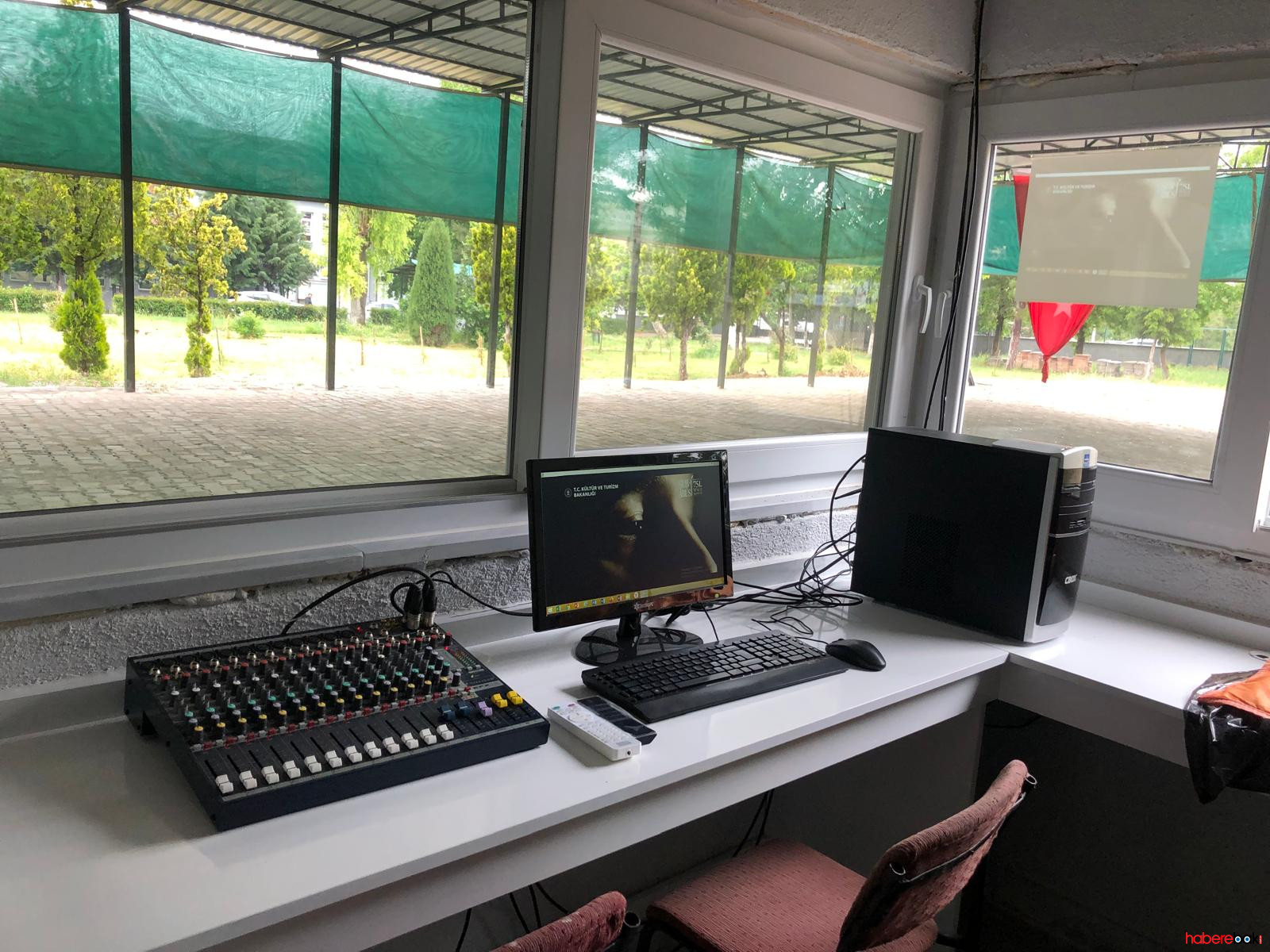 Amfi Derslikte, ses sistemi, Projeksiyon ve projeksiyon perdesi ile sesli ve görüntülü programlar yapılabiliyor.