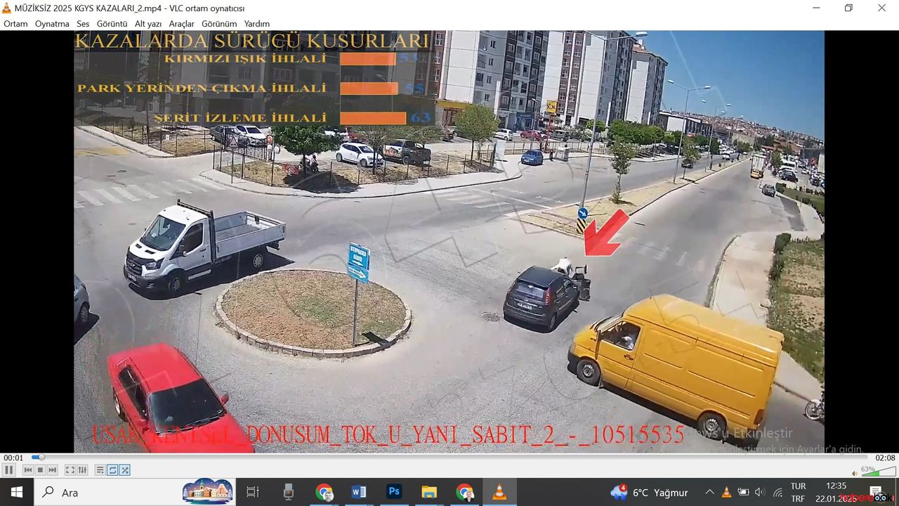 2025 yılı içerisinde ilimizde KGYS kameraları önünde meydana gelen yaralanmalı ve maddi hasarlı trafik kazalarının; Sürücülerin trafikte dikkatsiz ve tedbirsiz araç kullanmaları nedeniyle tehlike ve uyarı işaretlerine duyarsız kaldıkları, takip mesafesi, hız ihlali, kavşak geçiş kurallarına uymama, arkadan çarpma, şerit ve dönüş ihlalleri ile kırmızı ışık ihlallerinden kaynaklandığı tespit edilmiştir.